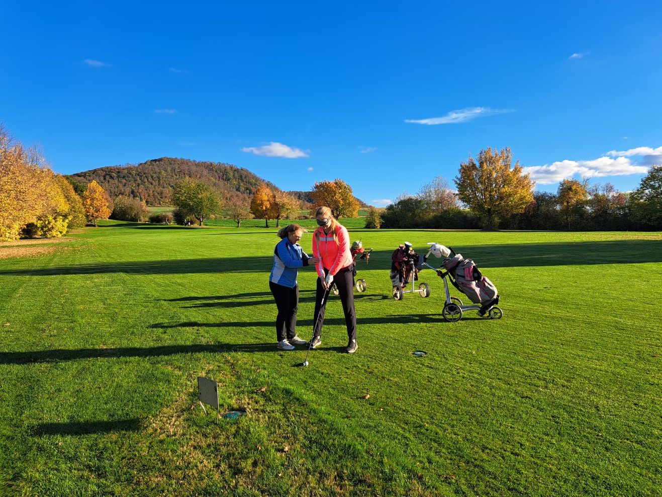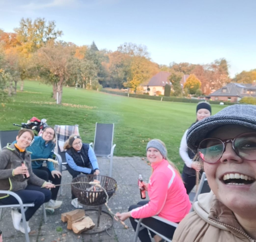 Herbstfoto-Challenges, Schlägertausch, eine Spielbahn mit verbundenen Augen oder Quizfragen zu Golfregeln und der Teamgeschichte erspielt werden. Die Oktobersonne, bunt gefärbte Bäume und beste Platzbedingungen sorgten für eine ganz besondere Atmosphäre. Anschließend saß das Team noch lange gemeinsam am Lagerfeuer – dazu gab es Stockbrot, Würstchen, ungarisches Kirschbier, Baumkuchen und gute Gespräche.